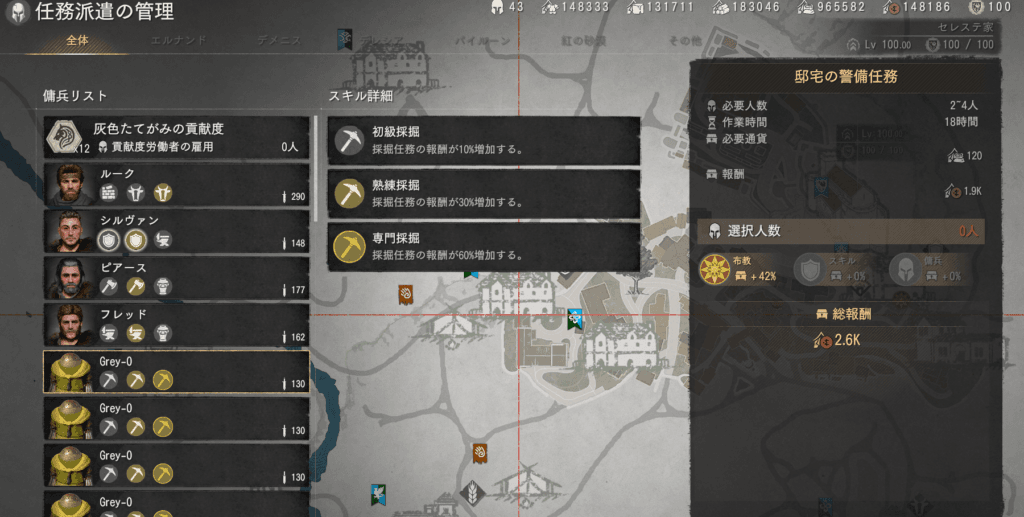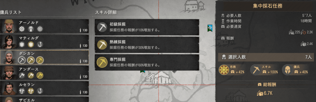 採掘3持ちの汎用傭兵を量産可能(上限数不明)。