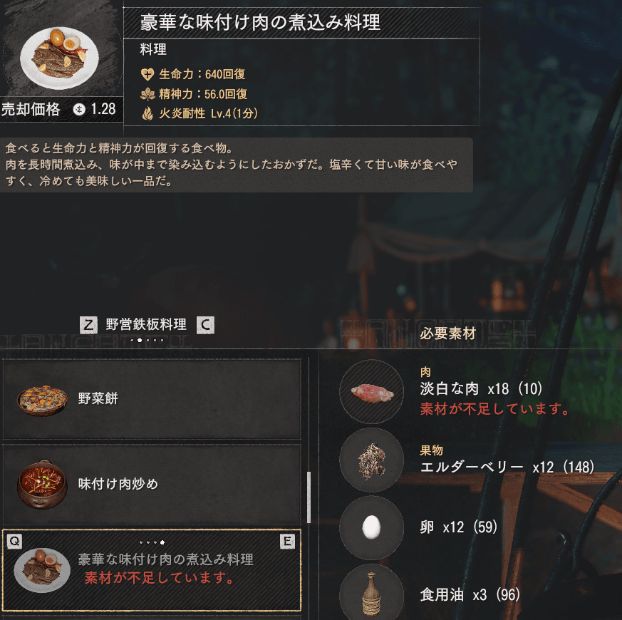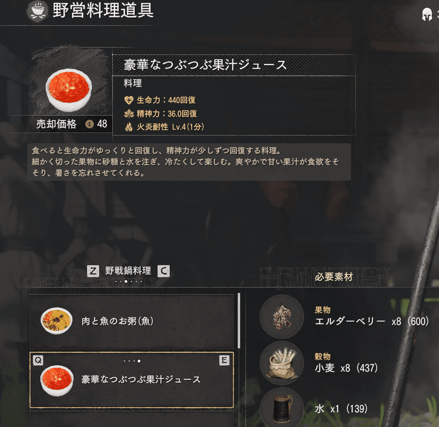 基本材料だと回復量は200と低いので、「豪華な」で作っておく