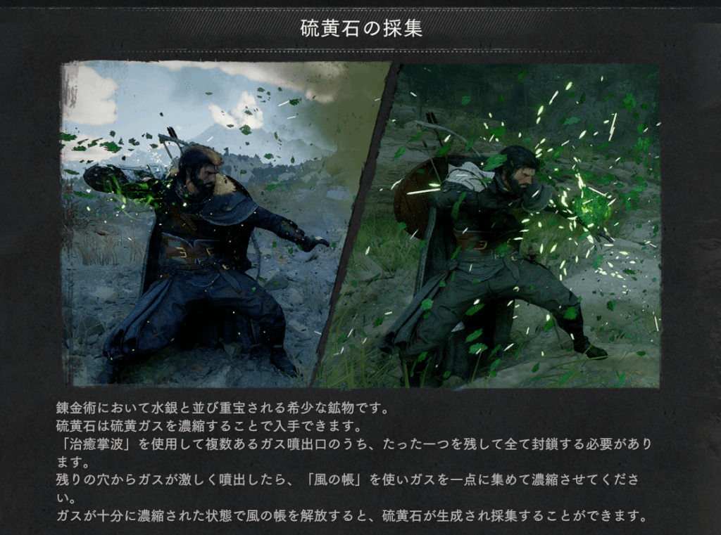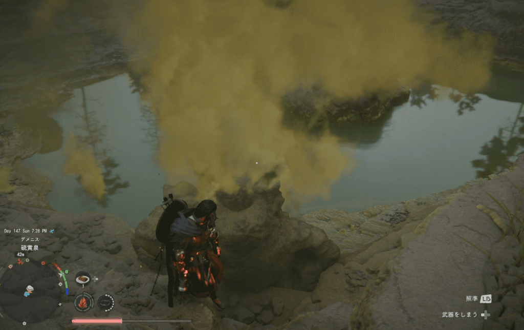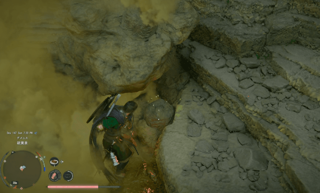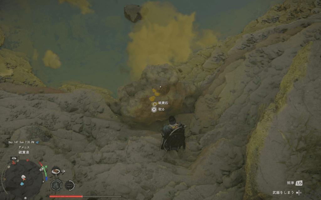ストーリー後半に差し掛かる辺りで行くことになるエリアだが、序盤で硫黄を取りに行くことも可能。