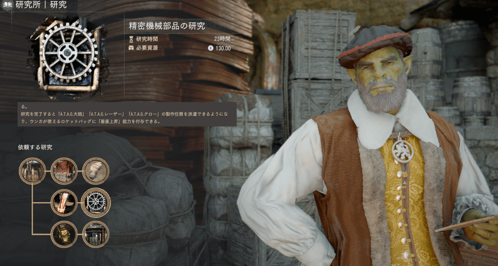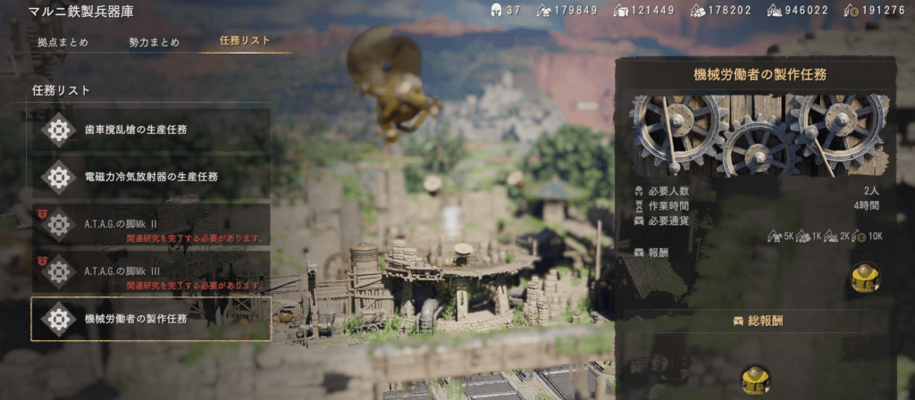 チャヤの研究を終えると、マルニ鉄製兵器庫で「機械労働者の製作任務」を発注できるようになる。