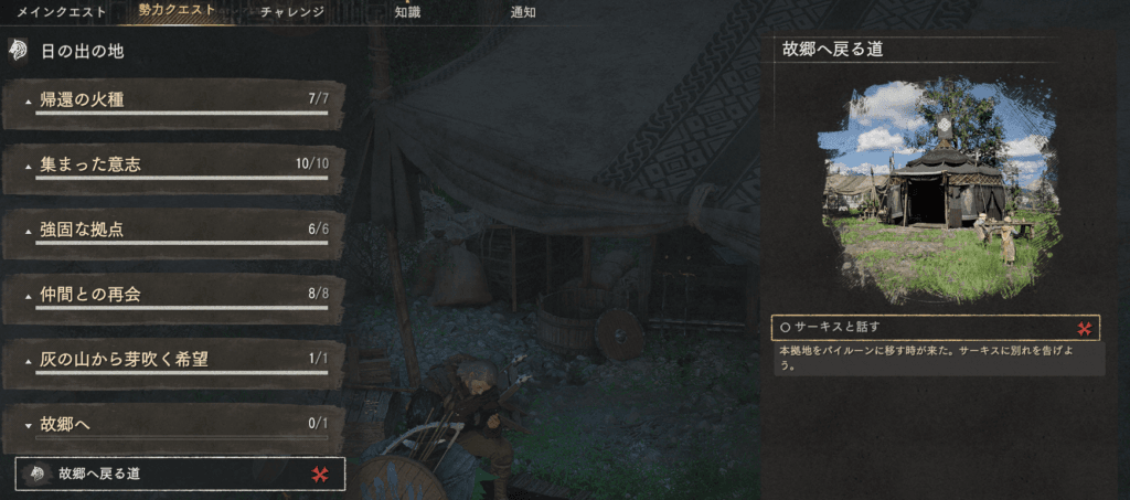 ・当該クエストを終了させると、「狼の丘キャンプ」は破棄され、全員がパイルーンへ移住します。