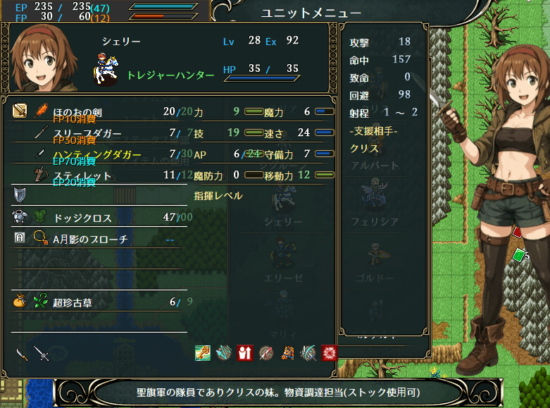 「ぶんどる」の為にトレジャーハンターにしましたが、「追撃」があると火力としてもそこそこ使えるようになるので(どうせ物資は最後余るので)サバーレンジャーの方が良かったかもしれない。