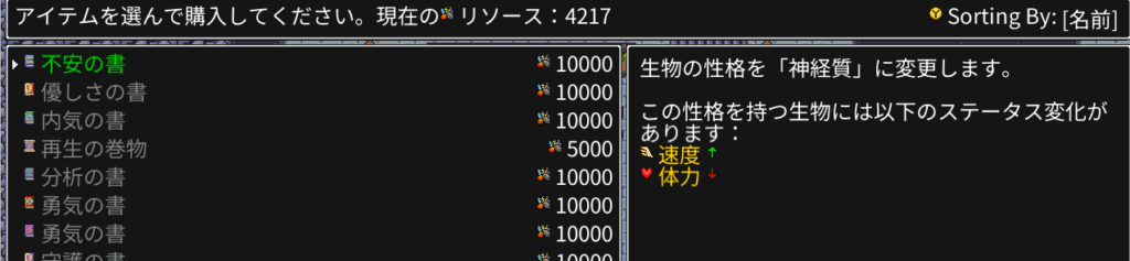 ショップで交換できる「鬱病」「ハートストッパー」はなかなか良い特性。