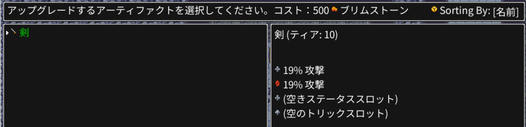 スペルジェムの強化はティア(最大15)を上げて、スロットに最大3つの特性をつけることができる。