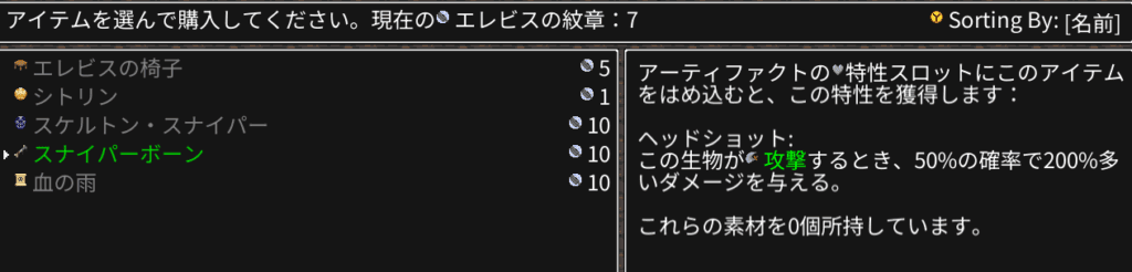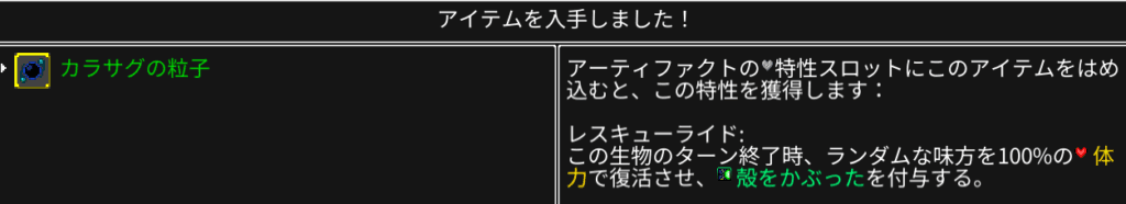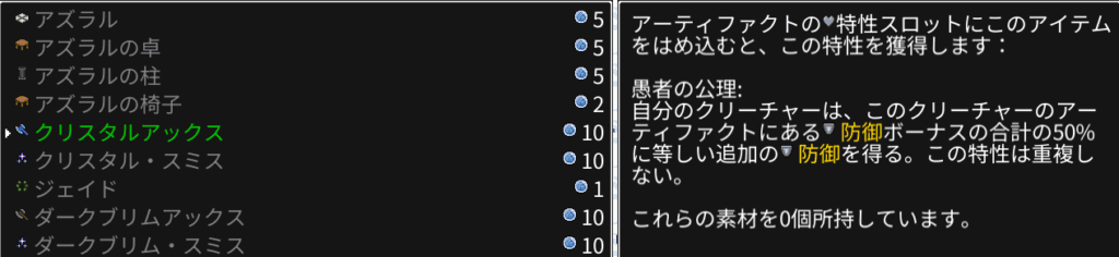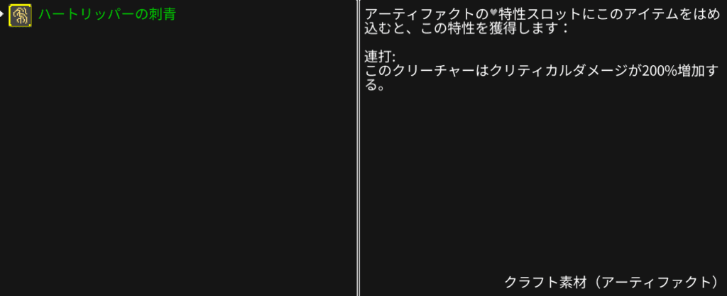 「暗殺」のプロジェクトが完了すると、対象の特性のついたアーティファクト特性(♡)を入手できる。