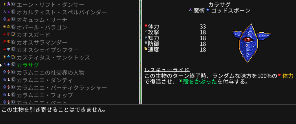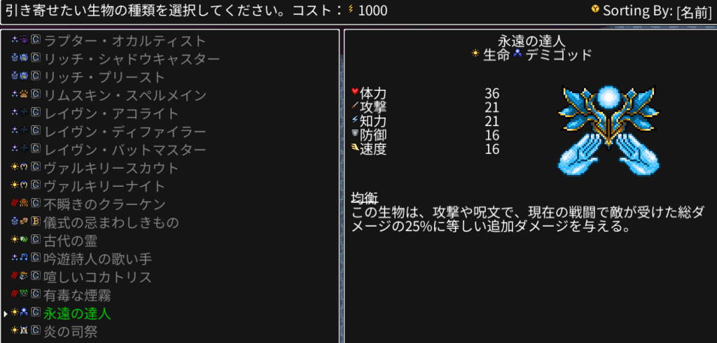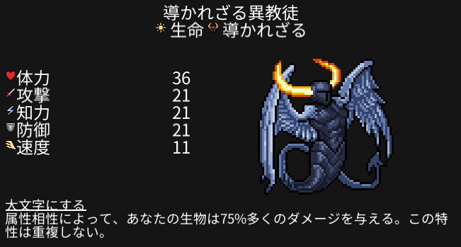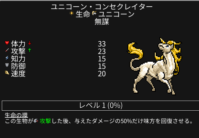 生物:ケルビム/デミゴッド/僧侶/サンクトゥス/ヴァルキリー/ユニコーン