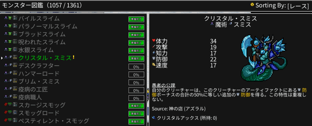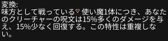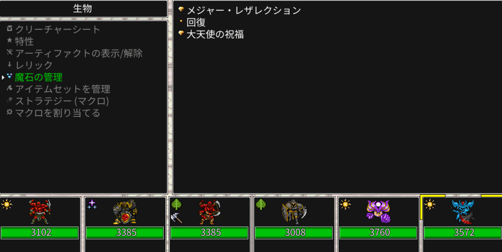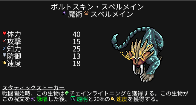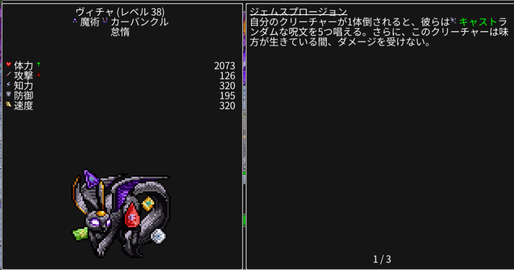 また、各々のクリーチャーは自分のクラス(属性)のスペルのジェムのみ装備可能である点は注意。