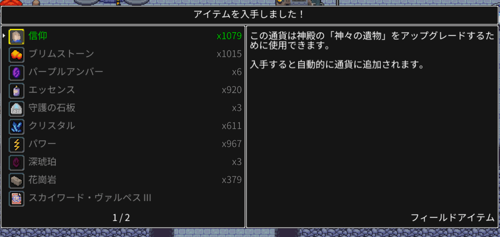 | 赤 | – | ブリムストーン | 花崗岩 | クリスタル | 信仰度(100~200) |