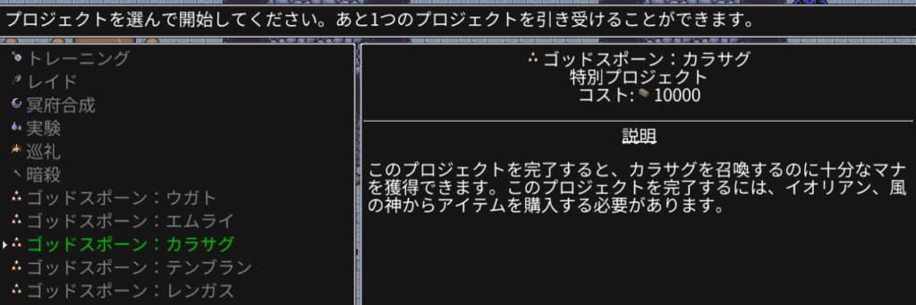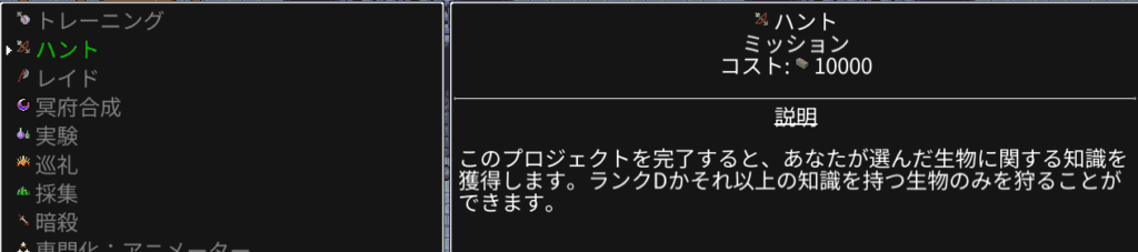 ランクSになると「暗殺」のプロジェクトが行えるようになる。