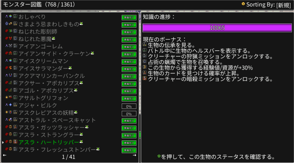 現在の知識はF~Sで表示され、現在のランクはモンスター図鑑で確認できる。