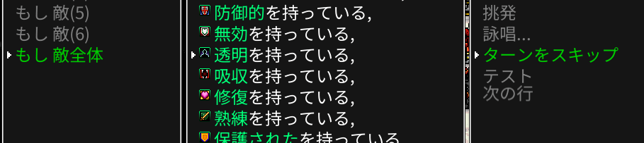 1行目:もし敵全体が【透明】のバフを持っていたらスキップ