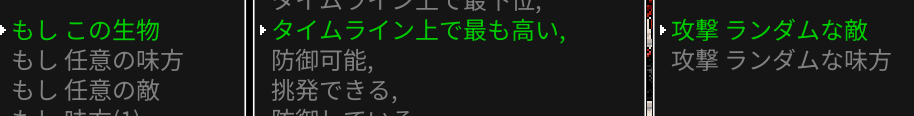 例えばスペルの場合チャージ(使用回数)不足、沈黙でもその行はスキップされます。