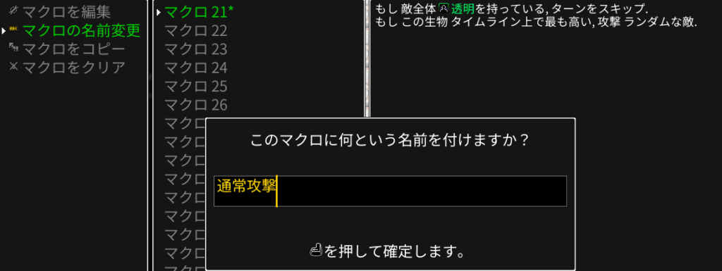 ストラテジー(マクロ)にしたため、初期カーソル位置が「マクロ」に合っているので決定キー(Aボタン)を押し続ければOK。