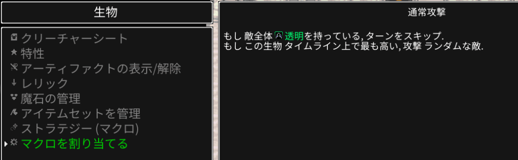 生物 > ストラテジー(攻撃)をストラテジー(マクロ)に変更