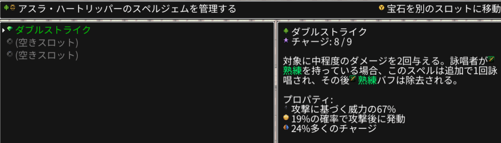 で装備済みのジェムが表示されますが、ここに表示されているのが「永続スペル」となります。