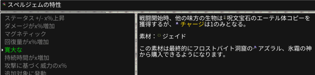 スペルジェムに付与できる特性「寛大な」の意味もこれらを踏まえれば分かると思います。