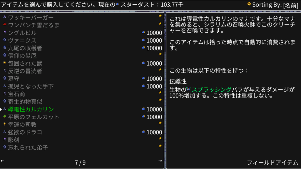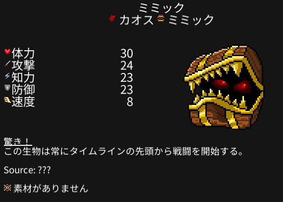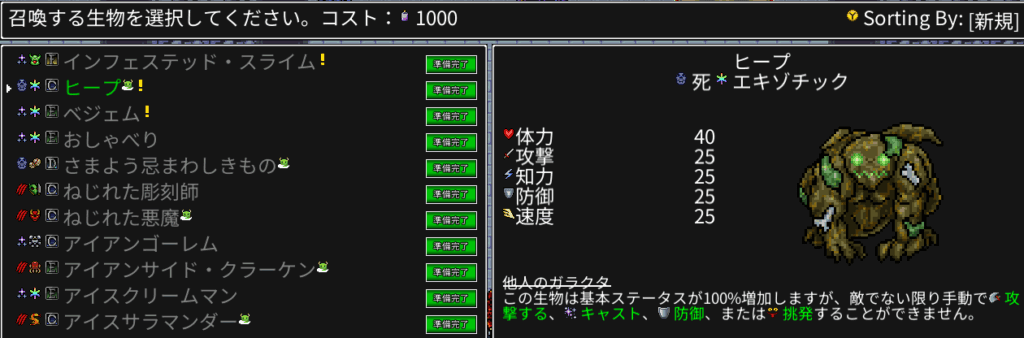 生物:ビーコン/ジン/ネフィリム/レイヴン/監視者/グリモワール/フェイズウォリアー/スライム/