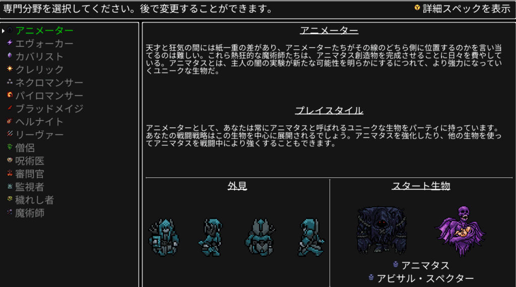 クラスは途中で変更可能で取り返しがつかない要素ではないですが、スタート生物の影響もあるので最初の選択はかなり重要。