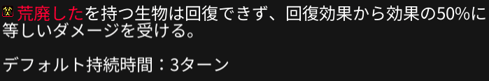 | 無力の呪い | 35 | 敵の攻撃が’(ランクごと)%減少する。 |