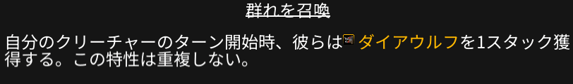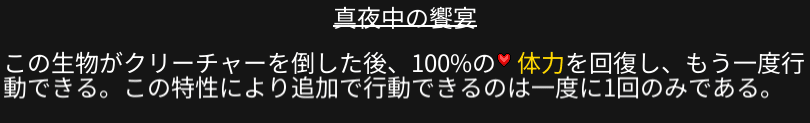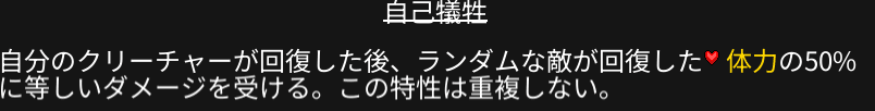 | オーバーラン | 10 | 味方のクリーチャーがバフを獲得した後、(ランク×3)%の体力を回復する、 |