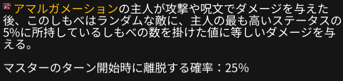 | 禁断の魔法 | 1 | 戦闘中にあなたのアニマタスが初めて倒された場合、100%の体力で復活します。 |