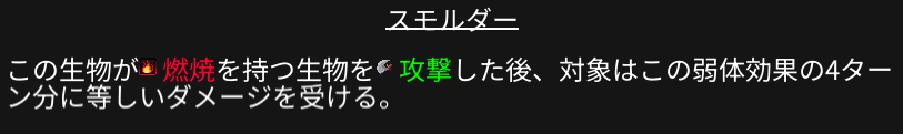 | アンホーリーナイト | 1 | 味方のクリーチャーが敵にデバフを与えた後、敵の最も低いステータスの80%に等しいダメージを与える。 |