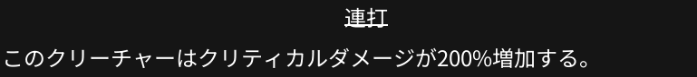 | ユニティ | 10 | 味方のクリーチャーがダメージを与える時、タイムライン上で連続して隣接する味方1体毎に(ランク×2.5%)多くのダメージを与える。 |