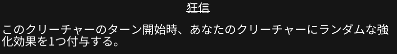 | 認識による苦悩 | 5 | バトル開始時、あなたのアニマタスはランダムな強化効果を(ランクごと)得る。 |