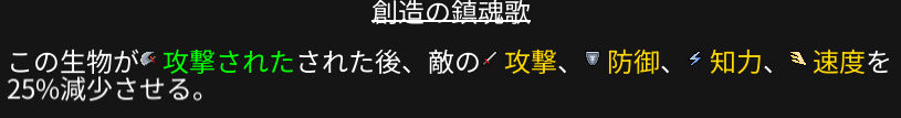 | 衰弱 | 50 | 敵のステータスを減少させるクリーチャーの効果を(ランク×2)%増加させる。 |
