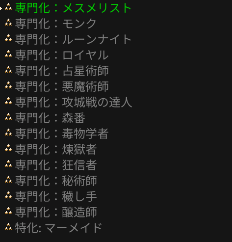 ちなみに専門分野(=specialization)だけど、ここではクラスと言い張って説明することにします。