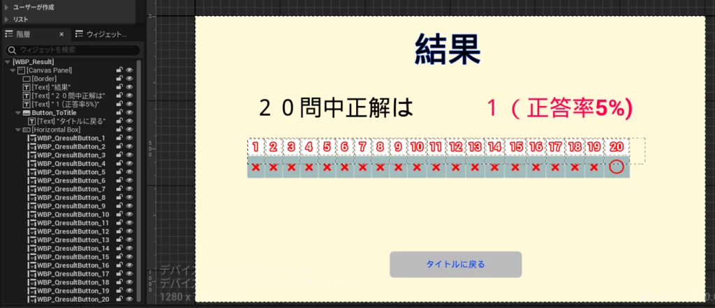 結果画面(WBP_QresultButton)に張り付けて結果の画面を作成。